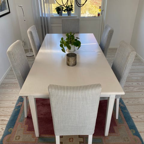 Stockholm matbord 200 cm levereras med 2 iläggsskivor à 45 cm så att du kan lätt kan förlänga bordet upp till 290 cm när du får gäster.