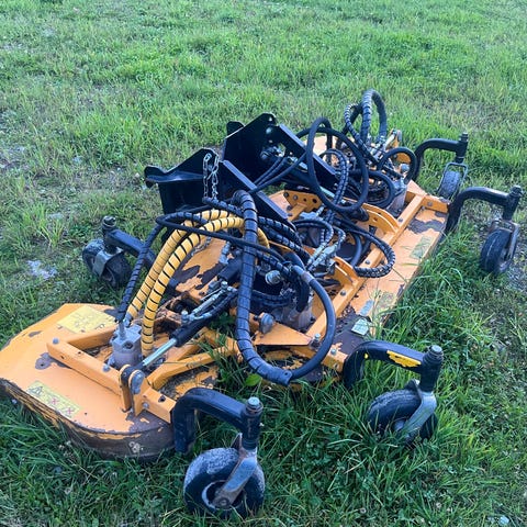 Traktormonterat klippaggregat för gräs och grönytor. Aggregatet är trepunktsmonterat och drivs via kraftuttag (PTO). Utrustat med stöd- och svänghjul för att följa markens konturer och ge jämn klippning. Passar för användning tillsammans med kompakttraktor på åkrar, betesmarker eller större gräsytor där ett bakmonterat klippaggregat behövs.