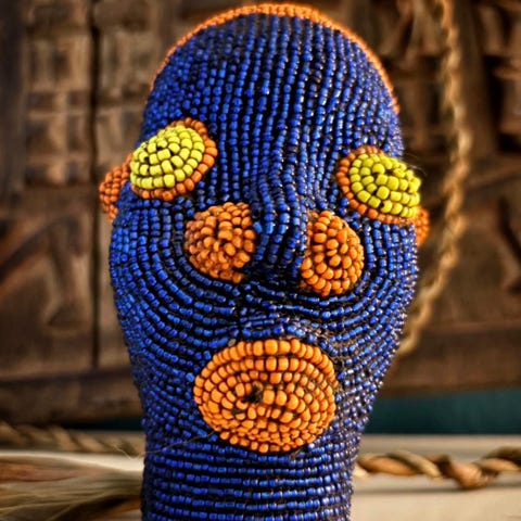 Vacker skulptur från Zimbabwe i snidad sten, tillverkad av Shonafolket. Stenen har en mörkt grön ton och föreställer ett barn med föräldrar. Statyn är i perfekt skick.