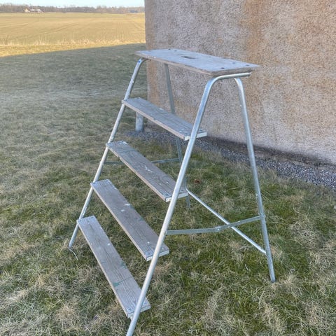 1. Stege arbetsbock i aluminium med tre steg på varje sida.