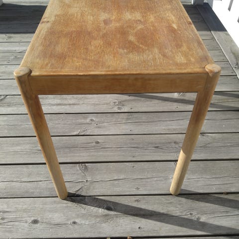Synligt använd, skavmärken på skiva och stålrören. Denna brukspatina gör bordet ännu charmigare. Skivan behandlad med möbelvax.