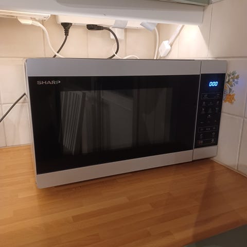 Hjälper syrran att sälja hennes mikro av märket Logik, för hon ska flytta.