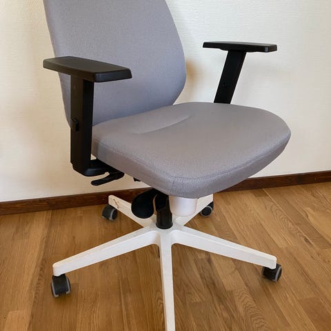 Very comfortable and ergonomic office chair with great lumbar support. Adjustable seat and backrest with a stylish design.