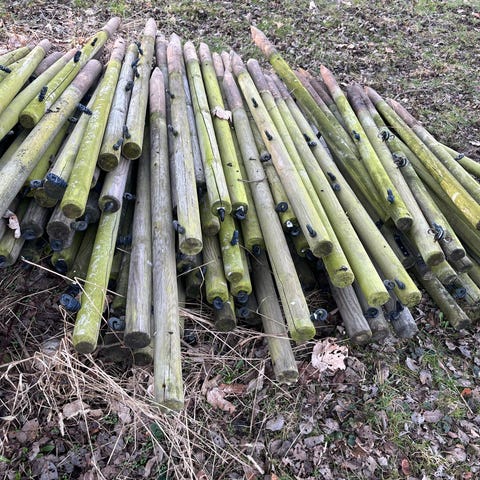 4 st träbommar. Längd: ca 230cm.