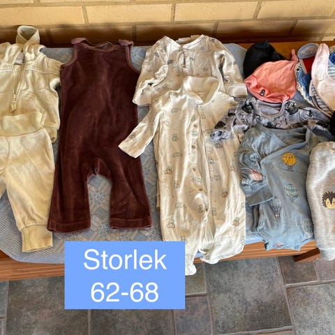 Osäker på storleken då den inte syns på kläderna pga tvätt som tagit bort märkningen. Misstänker storlek runt 62.