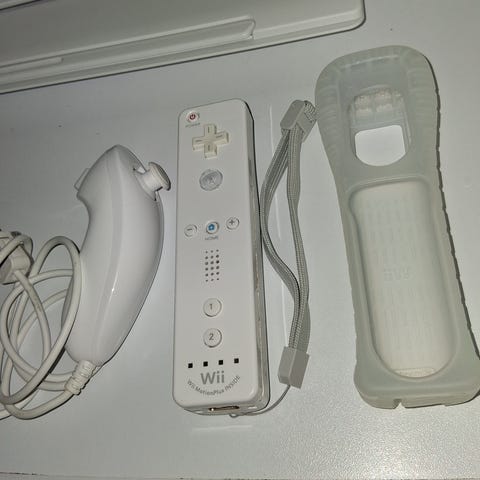 Nintendo Wii MotionPlus fjärrkontroll med tillhörande nunchuk i svart färg. Setet inkluderar handledsrem och gummiskydd/skal till fjärrkontrollen. Passar Nintendo Wii-konsoler och används som rörelsekänslig spelkontroll för olika spelgenrer.