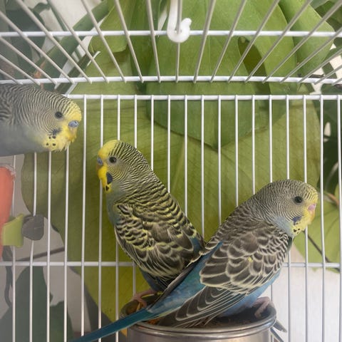 En undulat hane på ett år gammal frisk fint inte tam ändå biter inte när man håller i på handen.