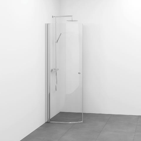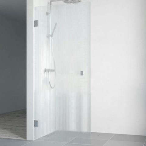 Inga svängbara dörrar och inga lyftgångjärn på denna duschvägg.