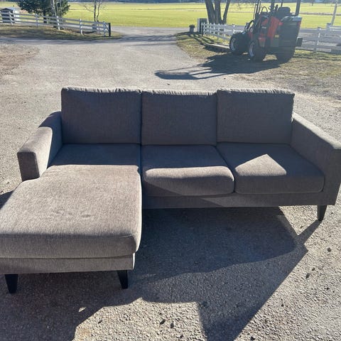 Säljer en snygg och bekväm 3-sits soffa i ljus beige/grå färg. Modern design med raka linjer som passar perfekt i både vardagsrum och kontor.