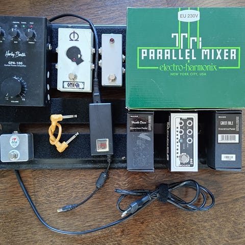Vintagedoftande rigg. Solid state 60 W, utmärkt pedalplattform. Smidig Crate stereolåda på 120 W med deras egna take på V30.