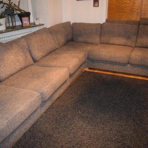Soffa med divan och schäslong. Svart/antrasitgrå.