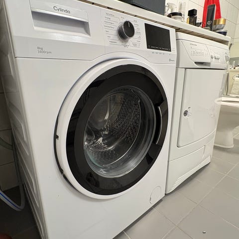 Husqvarna toppmatad tvättmaskin i vit färg. Tvättmaskinen har överliggande lucka och trumma som lastas uppifrån. Panelen har flera programval och inställningar för olika textiltyper och temperaturer. Maskinen är lämplig för hushåll som vill spara golvyta då den har smalare bredd än en frontmatad modell. Passar för normal vardagstvätt av kläder, handdukar och sängkläder.
