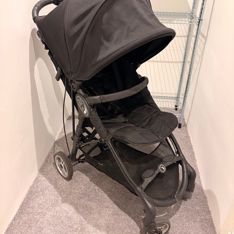 Baby Jogger barnvagn i svart färg. Passar för transport av barn vid promenader och vardagsanvändning. Märket Baby Jogger är anpassat för smidig körning och praktisk användning i stadsmiljö och liknande underlag. Kan packas ihop i väska vid resa. Tar lite plats. Ingår en extra dyna för bekvämlighet.