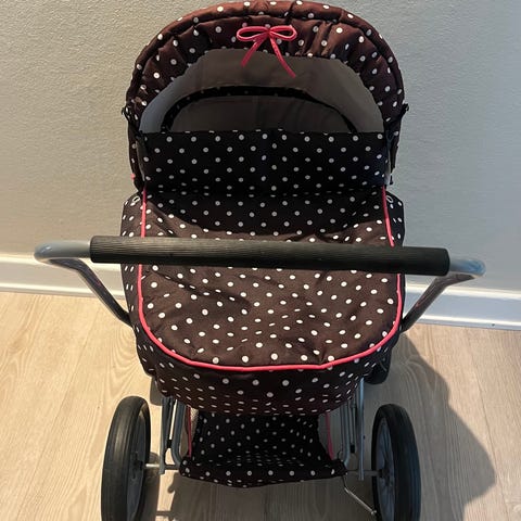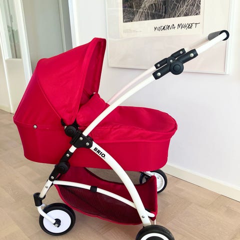 BRIO dockvagn i lila textil med metallchassi. Vagnen har kapell och liggdel anpassad för dockor. Invändigt finns mjuk bädd med täcke och kudde i rosa. Handtaget är fast och hjulen är stabila för inomhus- och utomhuslek. Passar för barn som vill köra och leka med dockor i vagn. Ingår dockor som dricker och kissar och en docka som låter när man trycker på olika kroppsdelar.