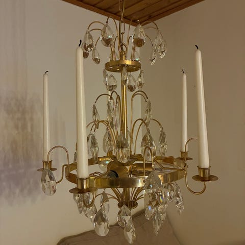 Vi tömmer min farmors lgh och har en fin taklampa med prismor.