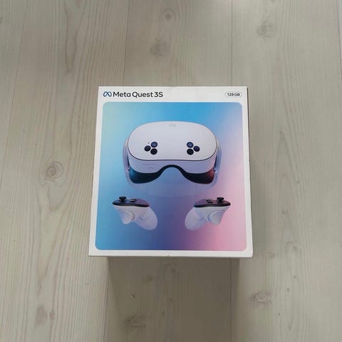 Helt ny oöppnad Meta Quest 3s VR-headset med tillhörande handkontroller. Standalone VR-enhet som kan användas utan extern dator eller konsol. Levereras i originalförpackning enligt bild. Lämplig för spel, underhållning och andra VR-upplevelser.