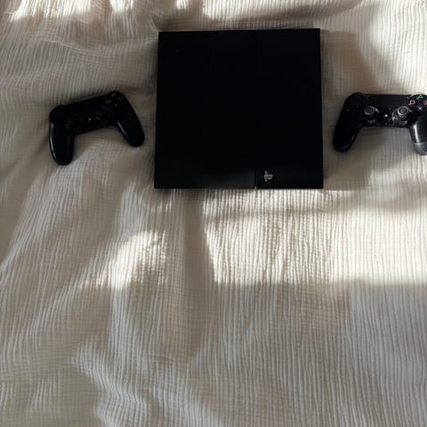 Sony Playstation 4 spelkonsol svart med två handkontroller och FIFA-spel
