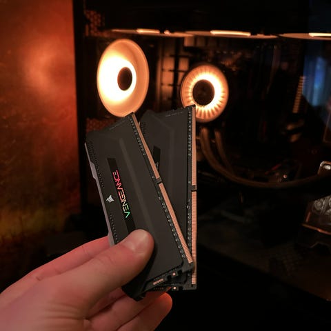 Corsair Vengeance RGB pro SL, riktigt snygga. 16GB (8x2). 3600 mhz cl 18