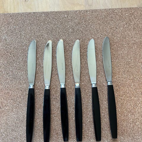 Kniv, gaffel, sked, fyra av varje av dessa bestick med skön retrokänsla.
