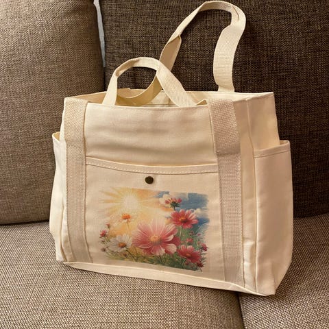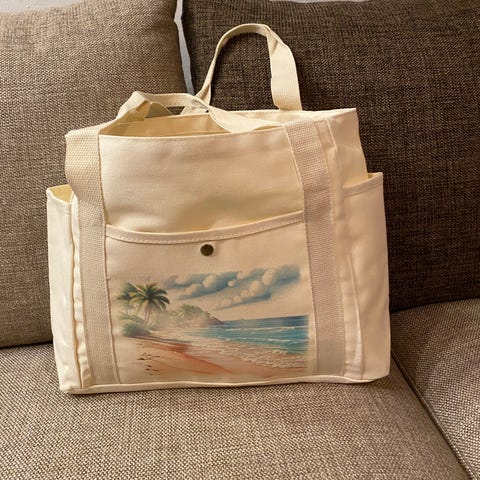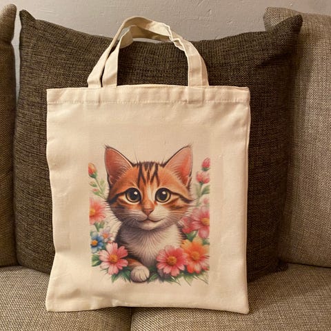 Beige väska/ handväska/ strandväska med kattmotiv