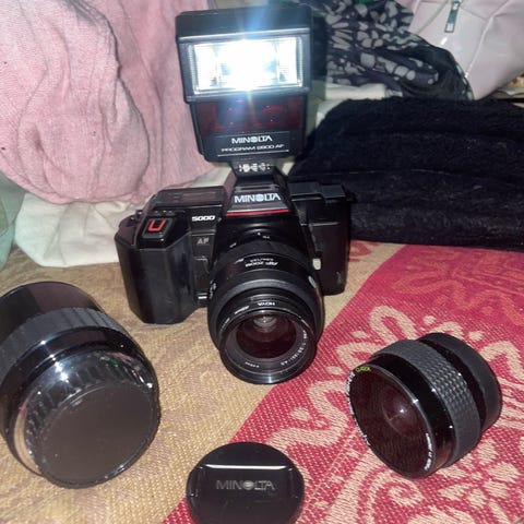Minolta AF-S2 kompaktkamera i svart utförande. Kameran är en analog 35 mm kompaktkamera med inbyggd blixt och autofokus. På kamerans framsida finns objektiv, sökare och blixt, samt reglage för exponering. Ovansidan har avtryckare och filmtransport. Baksidan har sökare och lucka för film. Kameran har handledsrem för enklare hantering. Lämplig för 35 mm filmfotografering i vardagssituationer och resor.