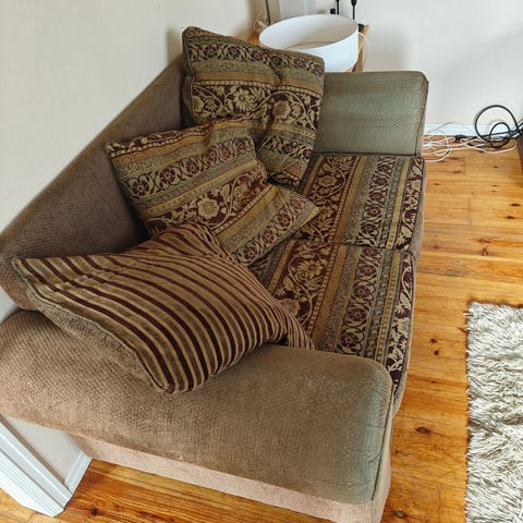 En soffgrupp med 1 soffa samt 2 fåtöljer bortskänkes! Äldre soffa men fortfarande i fint skick! Vet inte märket på gruppen.