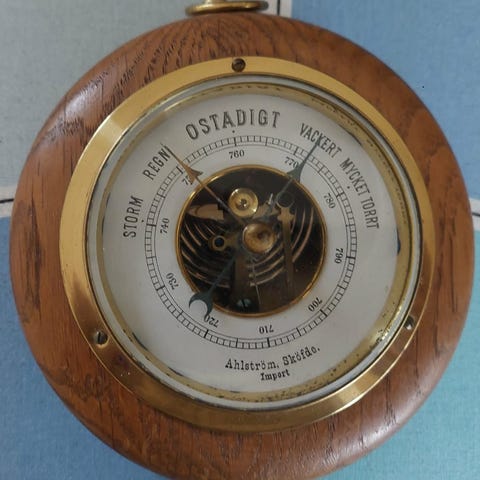 Kompass monterad i fyrkantig trälåda. Kompassen som är tillverkad i Köpenhamn, Danmark ligger upphängd i en metallring för att hållas horisontell. Kompassrosen är tydligt markerad med väderstreck och grader. Trälådan har skjutlock och är sammansatt med sinkade hörn. Passar som nautiskt instrument, inredningsdetalj eller samlarföremål. Lådans storlek är höjd 13 cm, bredd och djup är 21 cm.