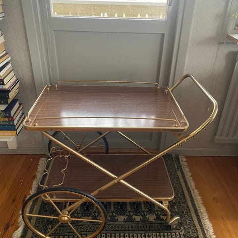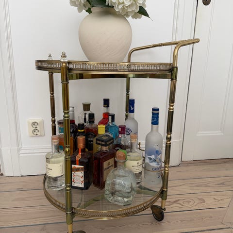 Serveringsvagn glas mässingsfärgad två hyllplan
