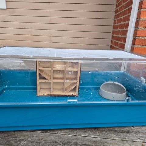 Nya burar i tre plan med sex fack lämpliga till kaniner o andra smådjur.Lätta att ändra till större fack.