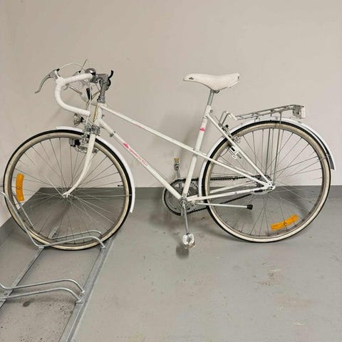 Rex Damcykel stadscykel med ramstorlek M och 28" hjul (700c). Bakbroms. Cykeln har låg instegsramsdesign anpassad för kvinna. Utrustad med pakethållare bak, kedjeskydd och stänkskärmar. Färgkombination i vitt och rosa med ljus sadel. Passar för vardagscykling i stadsmiljö och kortare pendlingsturer.