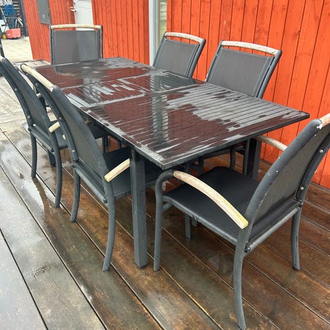 Endast använt ett par månader. Parasollfot i marmor med hjul på ingår.