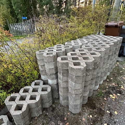 Marksten rektangulär betongsten i beige nyans. Stenarna är staplade på pall och lämpar sig för exempelvis uppfart, gångar eller uteplats. Rektangulär form gör dem lämpliga för olika läggningsmönster. Material: betong. Färg: beige/naturtoner. Pris 5kr/st