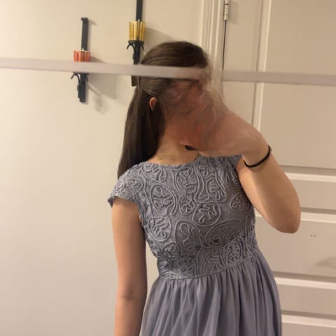 Klänningen är crèmefärgad och använd vid 2 tillfällen.