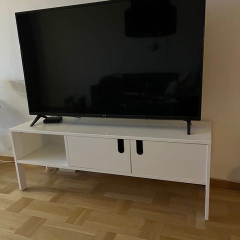 Säljer en TV-bänk från IKEA, modell BYÅS i vitt.
