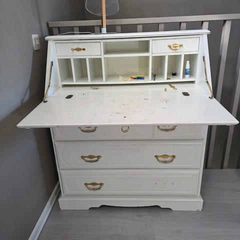 BORTSKÄNKES. Välanvänd, sliten, finns nagellacksmärken mm.