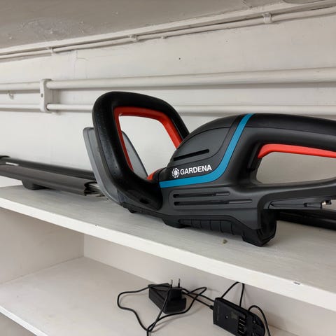 Greenworks häcksax i grön färg. Eldriven modell med främre bygelhandtag och bakre grepp för tvåhandsfattning. Lämplig för klippning och formning av häckar och buskar i trädgård. Exakt modellbeteckning och svärdlängd framgår inte av uppgifterna.