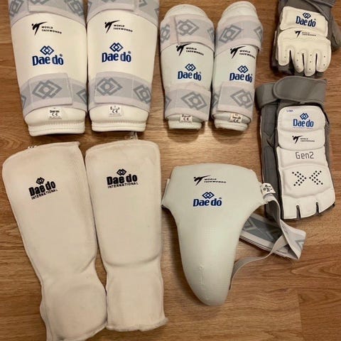 Taekwondo-utrustning för barn (komplett), 10-12 år, från Budo Nord. Pris för allt 1 000kr.