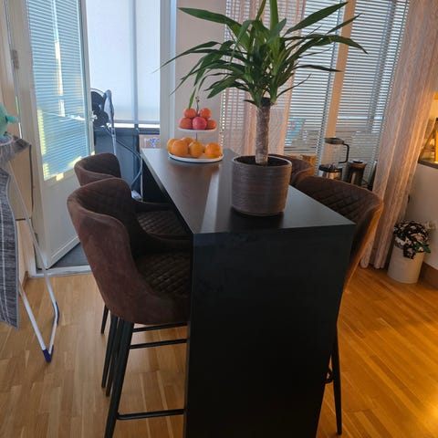 Barbord med hyllor på ena sidan