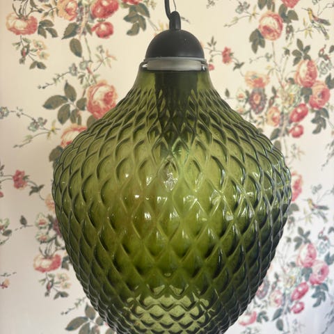 Den här lampan är gjord i Skansenglas, en svensk glasstil som växte fram under 1900-talet. Skansenglas-lampor uppskattas idag både som dekor och samlarobjekt.