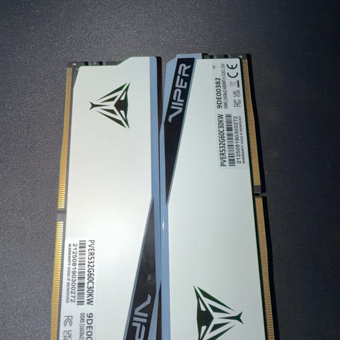 Team Group T-Force Delta RGB RAM-minne DDR5 med total kapacitet 16 GB och hastighet 6400 MHz. Modulerna är vita och av typen DIMM för stationära datorer. Lämpligt för system som stödjer DDR5-minne med denna frekvens och specifikationer .