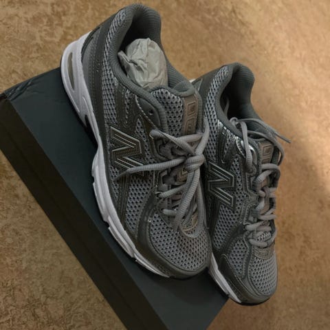 Asics Gel Kayano 14 silver/beige sneakers i storlek 43.5. Modellen är i färgerna vit och silver med svarta detaljer. Ovandel i mesh och syntetmaterial med Asics-logga på sidorna. Sulan har GEL-dämpning i hälen och mönstrad yttersula i gummi för grepp. Passar som vardagssko eller för lättare träning och promenader.