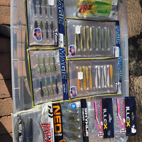 Allt i de stora påsarna, Westin, savage gear är NED med det separata över och i småpåsarna är små gummibåten som buffert för drop shot etc. Som synligt på bilden så är vissa paket inte fulla som savage gear och 2 Westin.