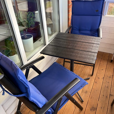 Stått ute så lite solblekt samt normal påverkan av väder, kan behöva en ny omgång för denna säsongen. I gott skick annars.