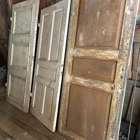 Fin antik glasad innerdörr med karmyttermått 224 x 100 cm med originalbeslag och ådringsmålning (en del skador i färgen, kan restaureras). Högerhängd. Endast avhämtning Uddevalla.