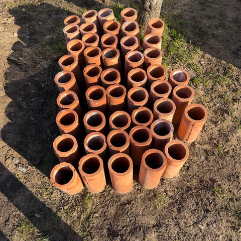 Tegelrör med invändigt mått 100mm, 300mm långa. Passande till vinställ m.m.
