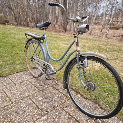 1 st framhjul med 635-fälg passande gamla klassiska cyklar, axlar, nya lager ingår