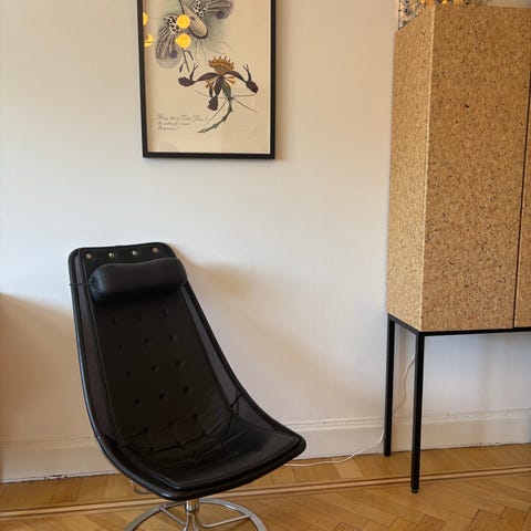Bruno Mathsson fåtölj grön klädsel kromade ben