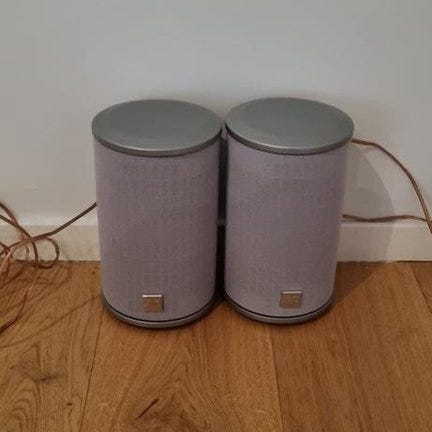 JVC högtalare i svart, spår av bruk där högtalarna blivit stötta men ljudet är jättebra och rent.