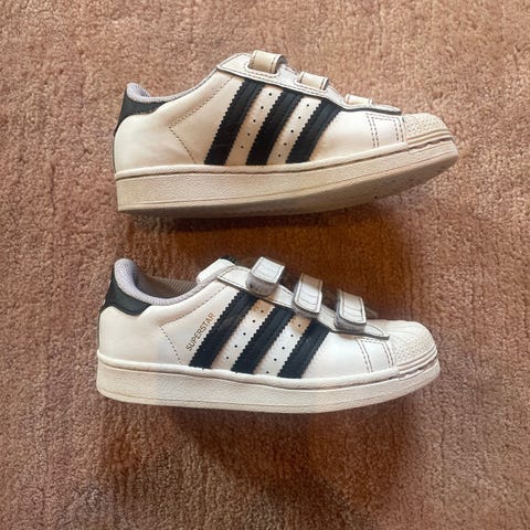 Ett par Adidas klassiska Superstar i vitt med svarta detaljer & den