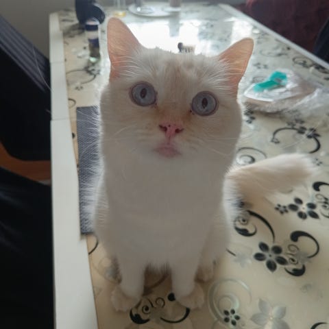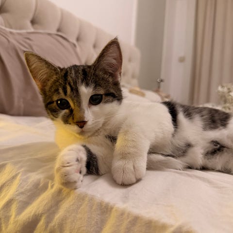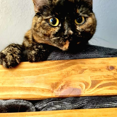 Hon är en väldigt social och pratglad katt och behöver mycket stimulans så hon hade passat bra med en kattkompis men det är såklart inget krav om man själv kan ta det ansvaret.